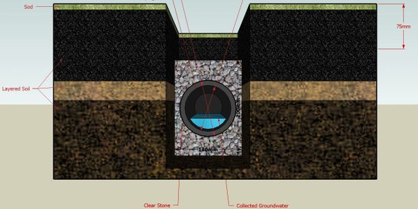 Water travels freely through the pipe, which empties a safe distance from the house.